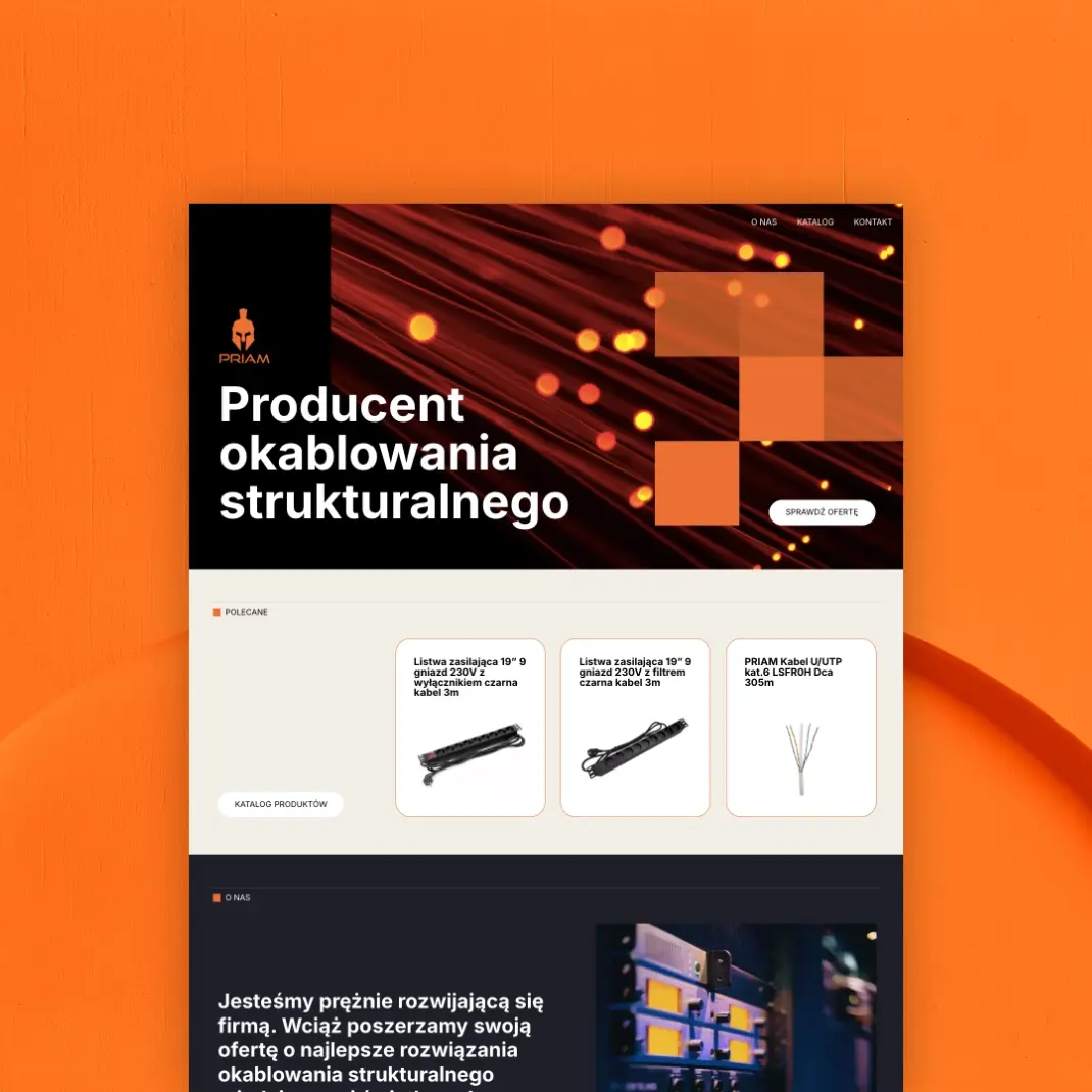 Priam z Lublina jest producentem okablowania strukturalnego. Firma potrzebowała nowoczesnej strony, na której mogłaby w sposób przejrzysty i atrakcyjny zaprezentować oferowane przez siebie specjalistyczne produkty. Stworzyliśmy indywidualny projekt graficzny strony, utrzymany w kolorystyce zgodnej z brandingiem marki, zbudowaliśmy czytelny i łatwy w nawigacji katalog produktów zawierający kluczowe informacje o ofercie firmy.